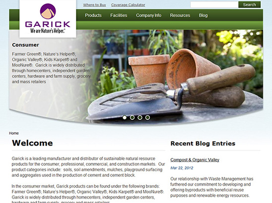 Garick, a manufacturer and distributor of natural resource products such as mulch and compost, came to Media Box Studios wanting to update their online presence. The website, built using Dot Net Nuke, is scalable, content managed and e-commerce ready. This earthy design is the very first responsively designed site that I worked on.