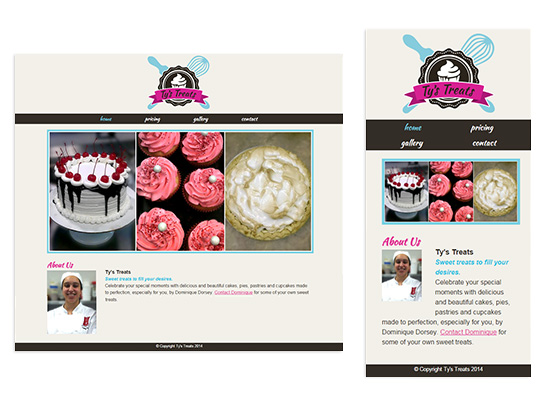 In 2014 I decided to go back to school to refresh my web development skills. For the final project of my Web Design 1 class, we needed to create a website using what we learned throughout the course. I created a website for friend who sells baked goods as a part-time side business. One of my goals on this project, though not required, was to maintain a fluid layout that worked well on mobile devices.